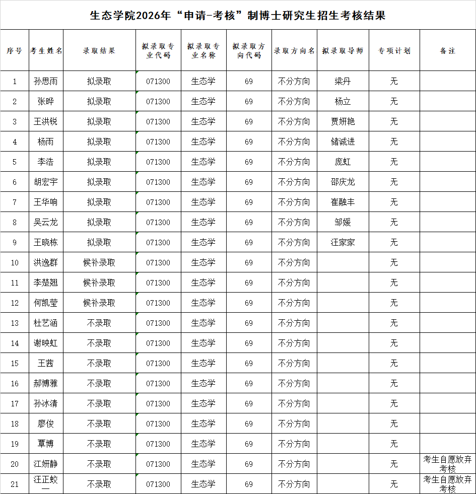 现将太阳集团tyc862026年博士生“申请-考核”制考核录取结果进行公示。