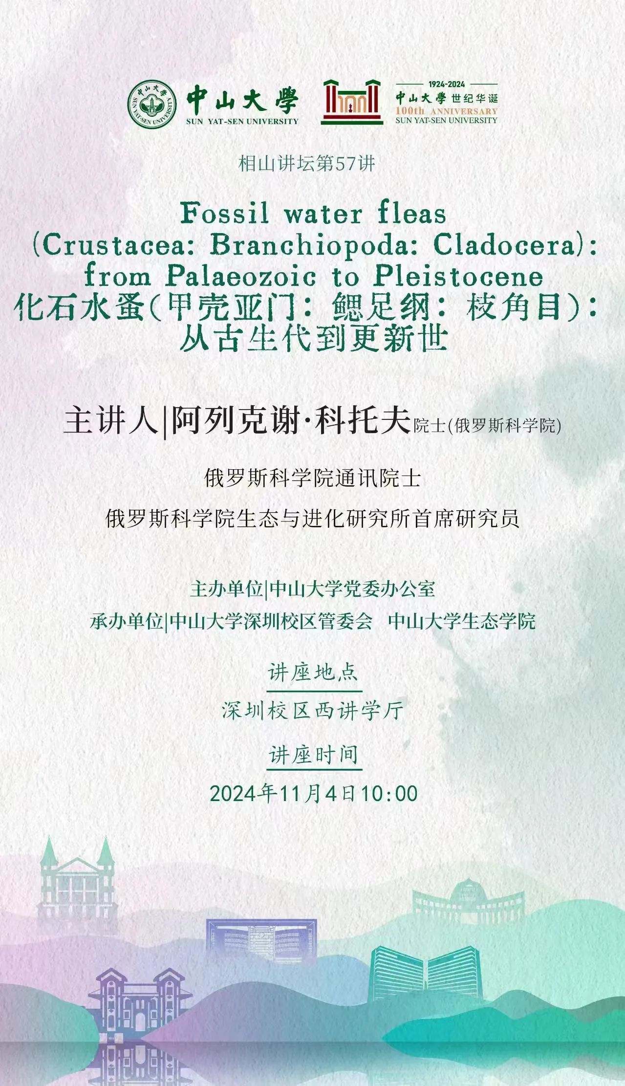 相山讲坛第57讲:化石水蚤(甲壳亚门:鳃足纲:枝角目):从古生代到更新世